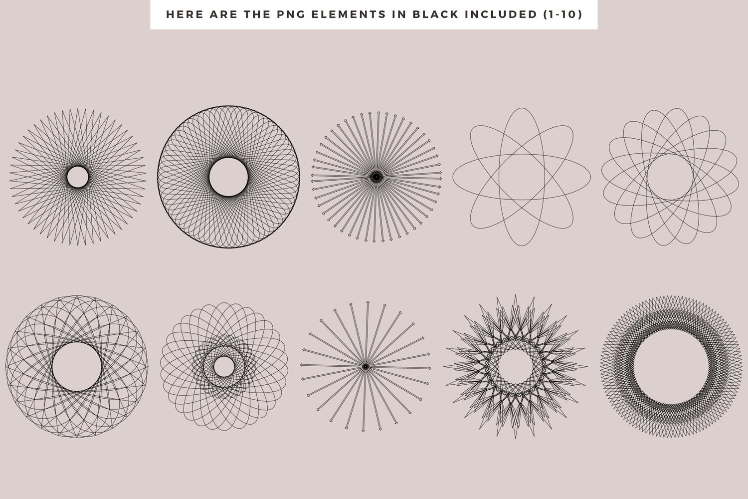 - 10 Retro Inspired PNG Elements with transparent background (300 dpi, in black and white colors)